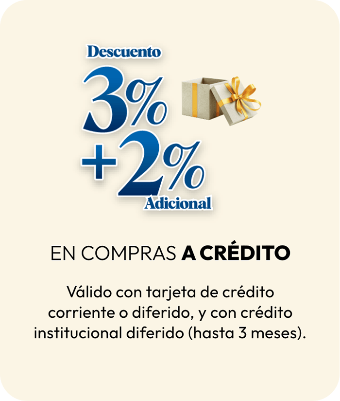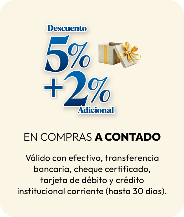 En compras empresariales a partir de $1.000 + IVA, en todas nuestras Marcas Propias y Exclusivas, recibe el 2% DE DESCUENTO ADICIONAL: